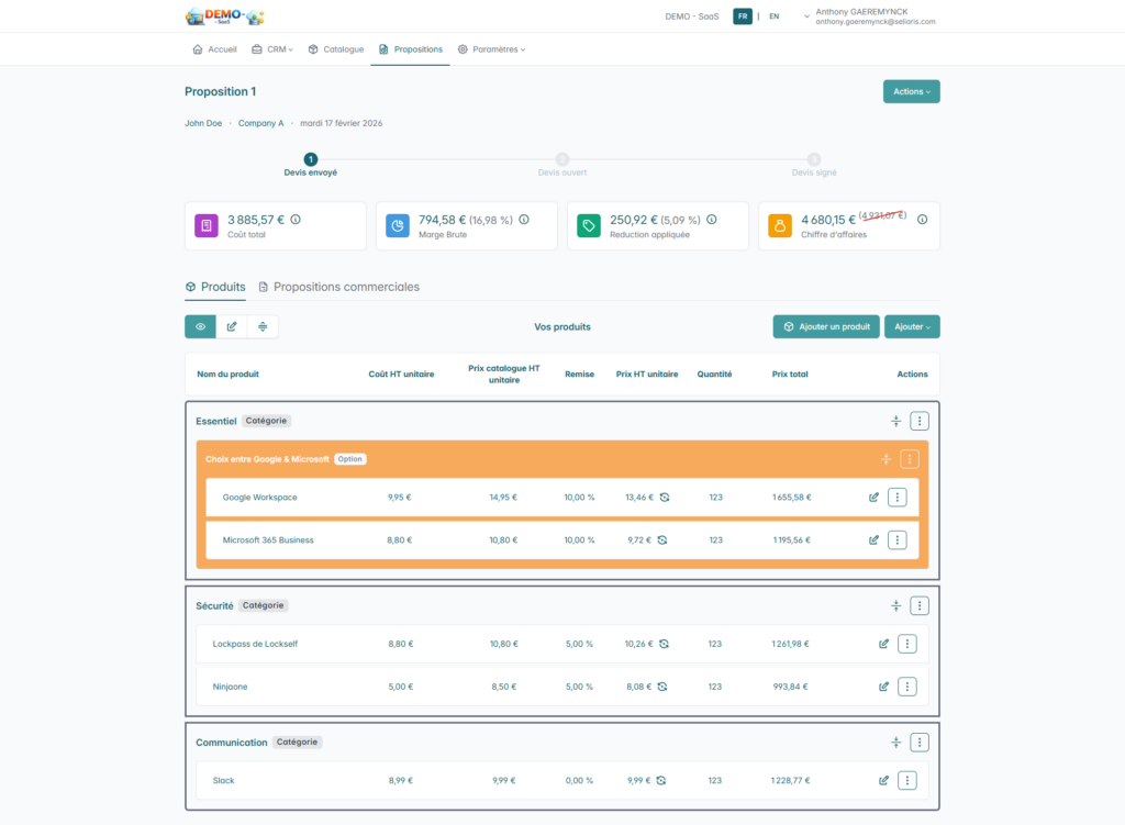 « C’est un vrai outil de pilotage de l’activité commerciale. Tout est centralisé, à jour en temps réel, et ça fait gagner un temps fou : fini les recherches interminables de propositions commerciales ou les doutes sur leur validité. »