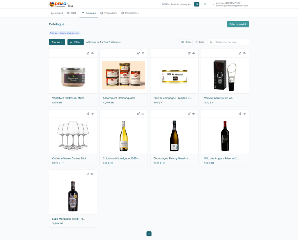 Chacune des fiches produits intègre des éléments de structuration et valorisation de l’offre : Images, vidéos, liens internet, description adaptée au produit, terme clé, économie carbone si disponible, prix achat, prix vente, …